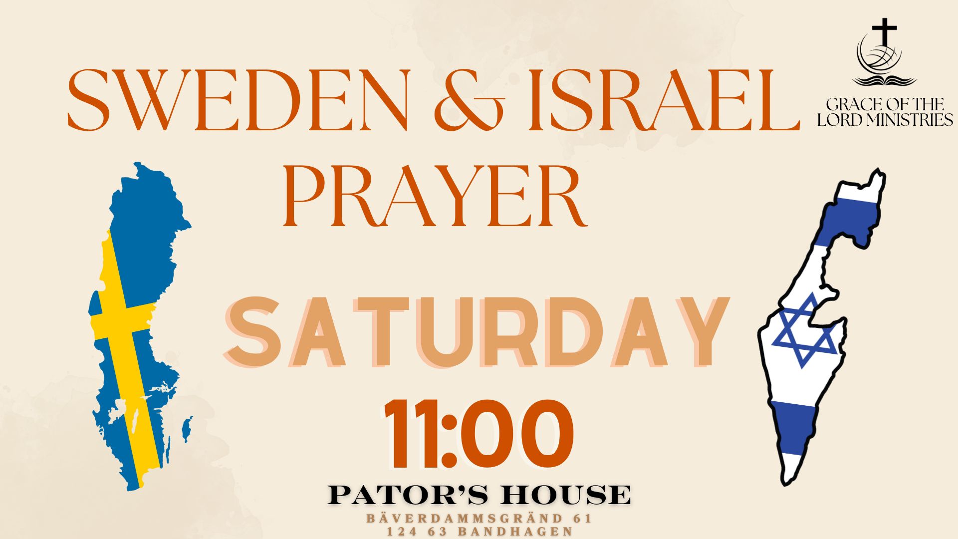 Every month on third Saturday we gather to pray for Sweden and for the peace of Israel. Please join us if you wish the wellness of the nations.
